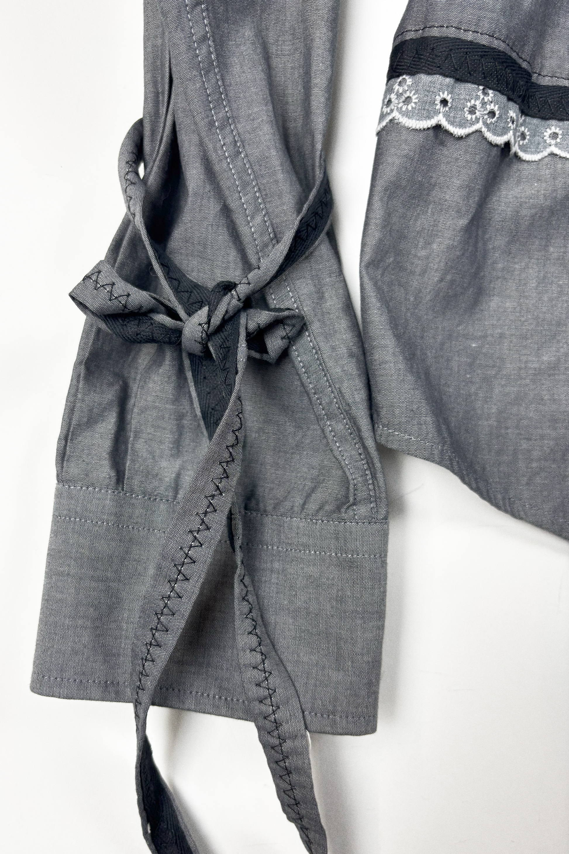 Reworked from a vintage cotton shirt and hand-dyed lace from the 1980s.