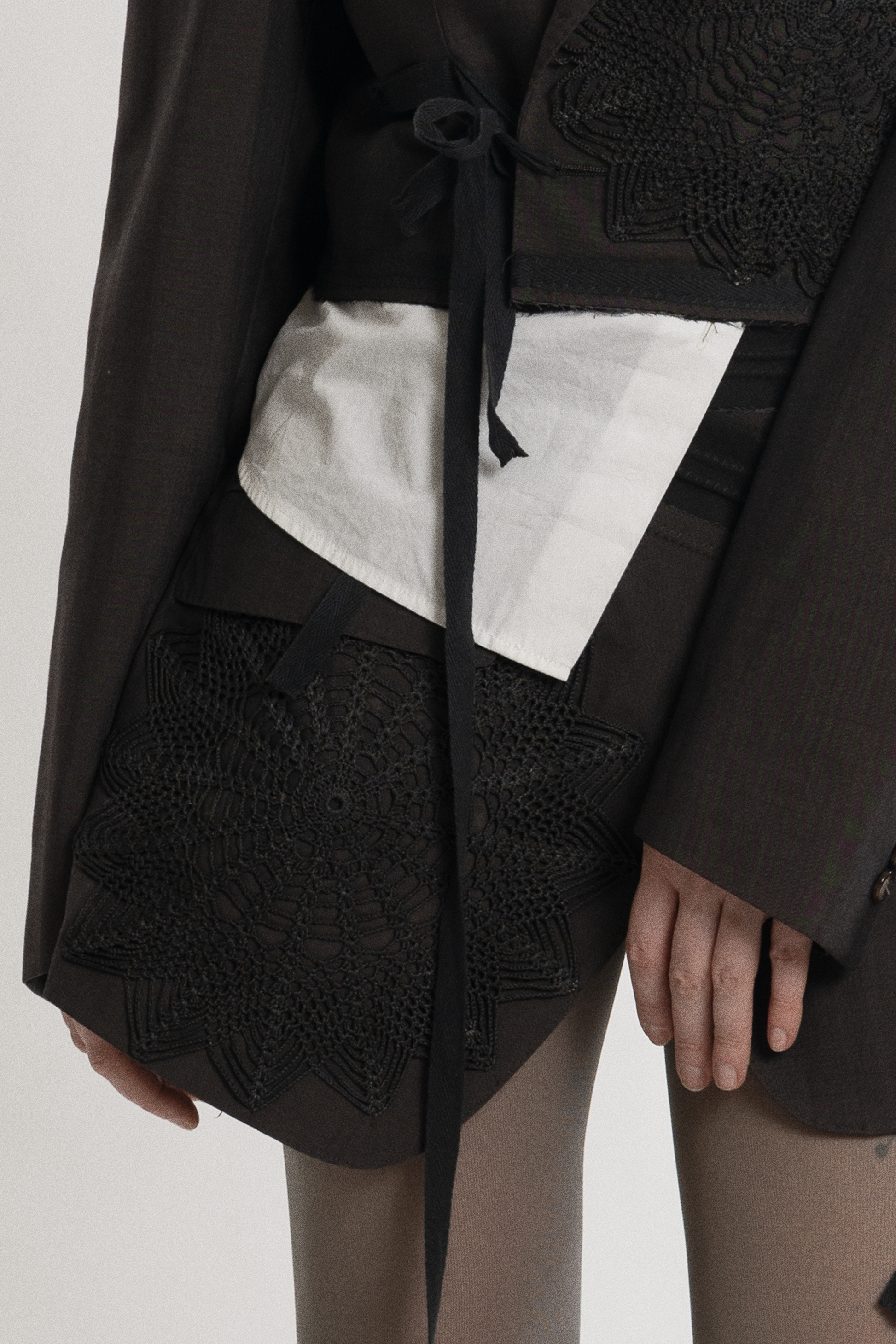 Reworked from a vintage blazer and vintage handmade crochet motif. Hand dyed.