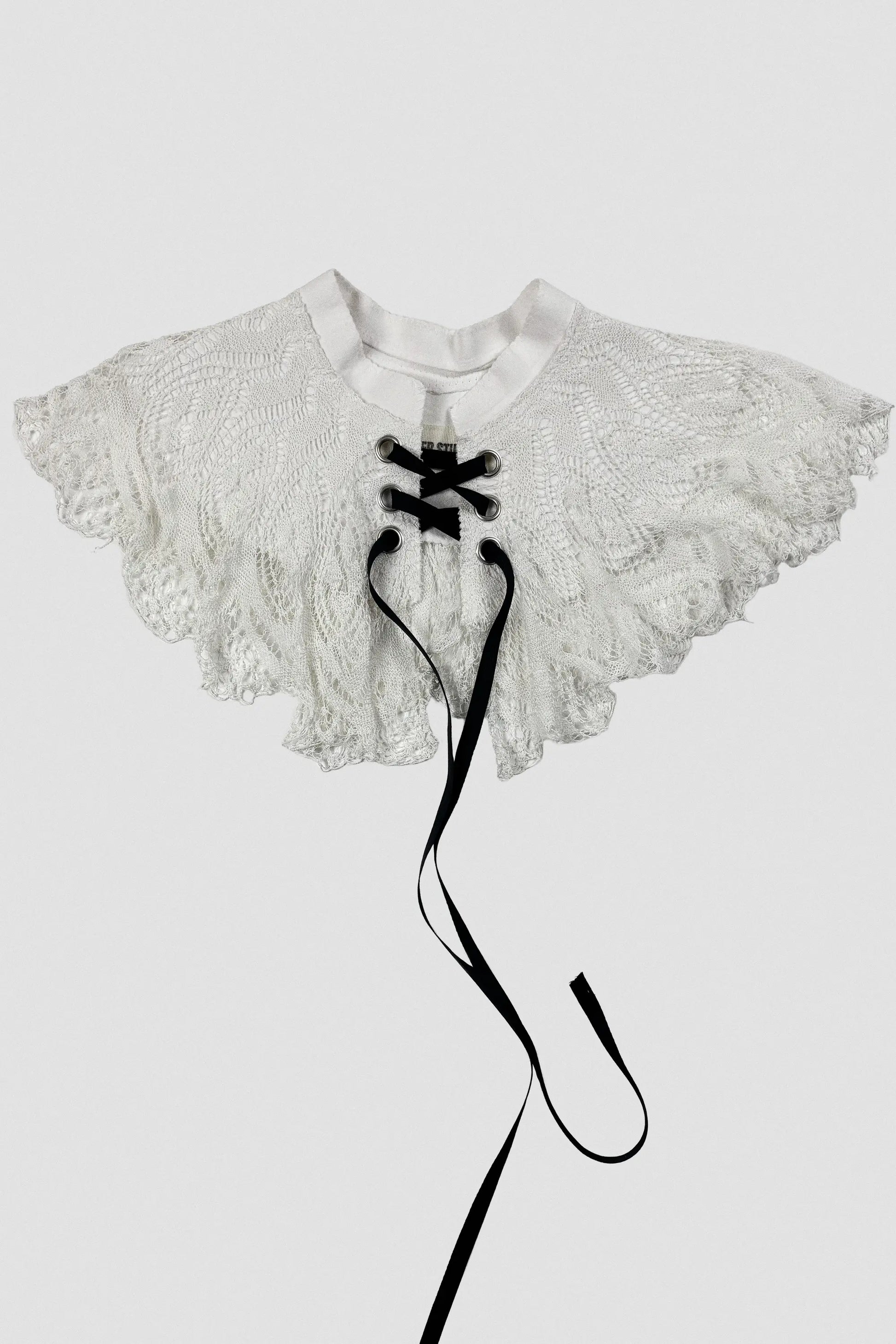Constructed from a vintage handmade crochet and cotton bedding.