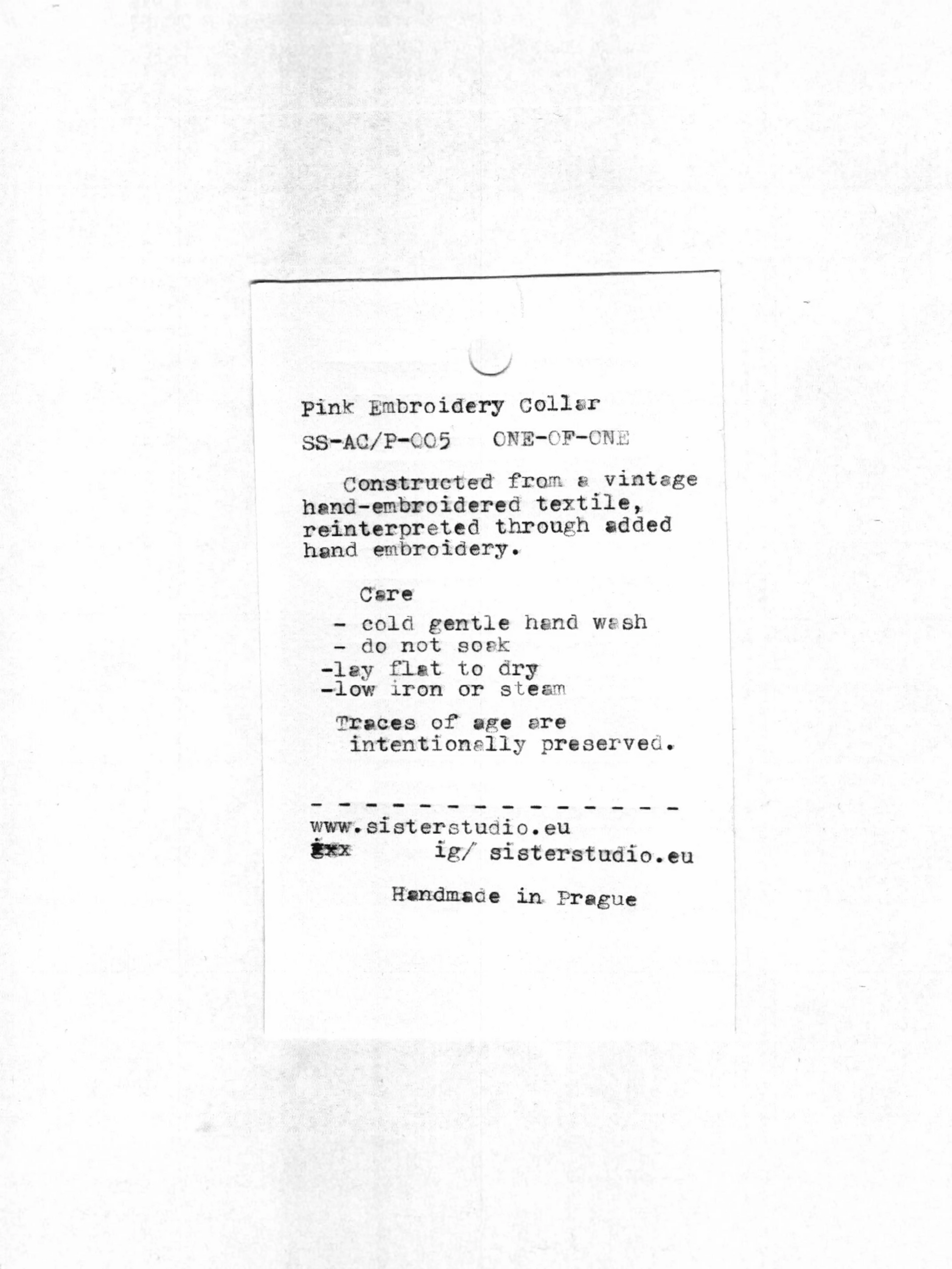 Constructed from a vintage hand-embroidered textile, reinterpreted through added hand embroidery.