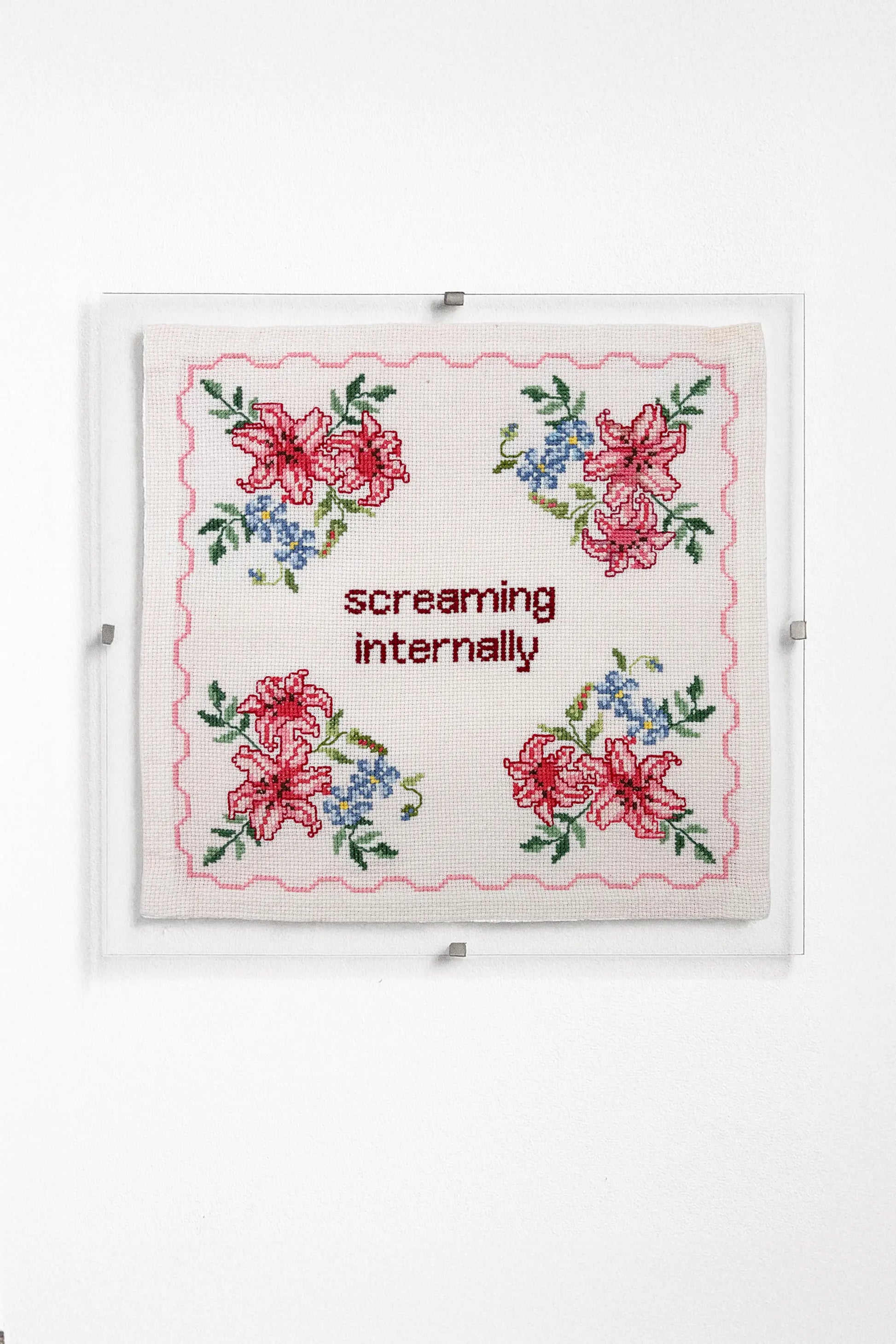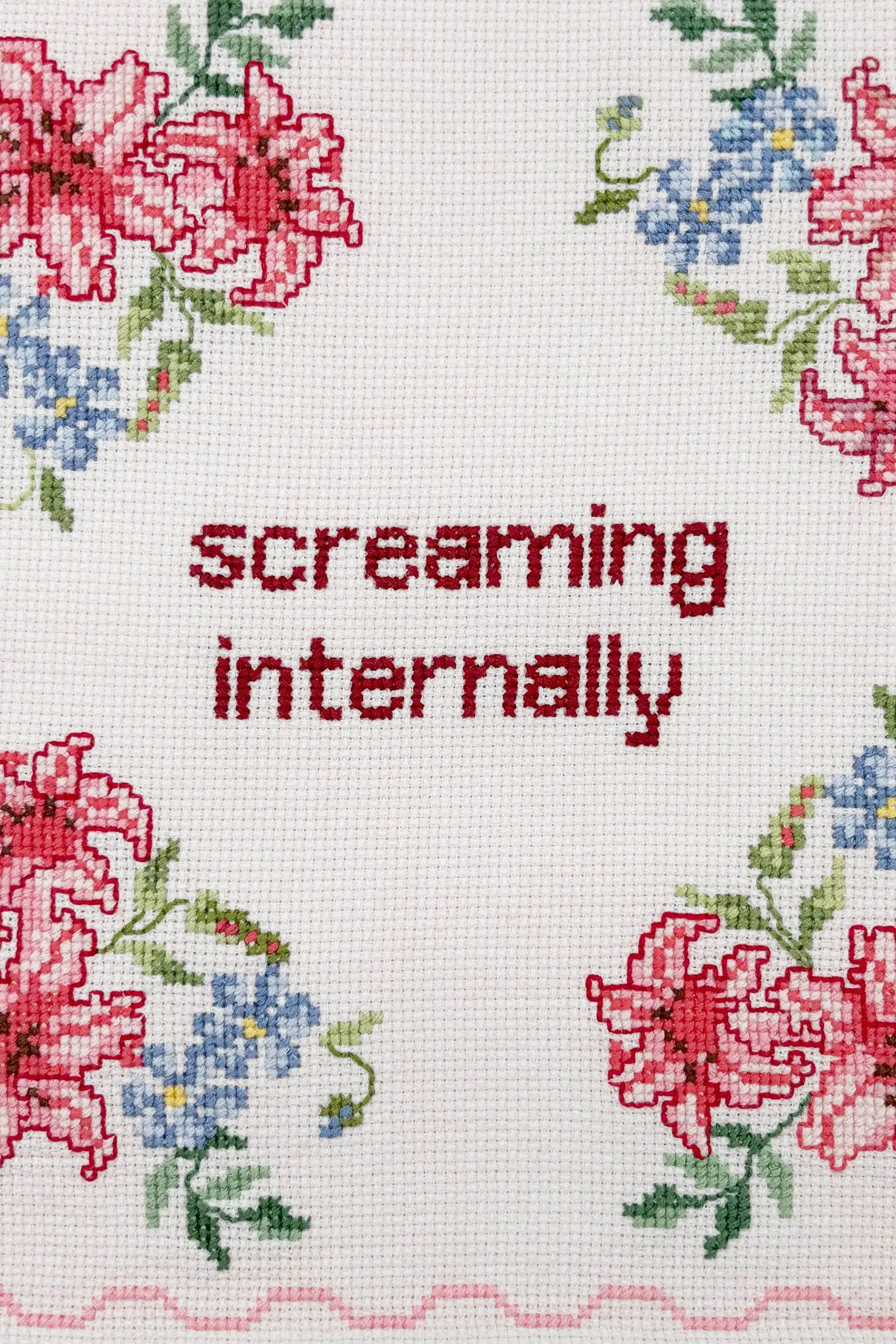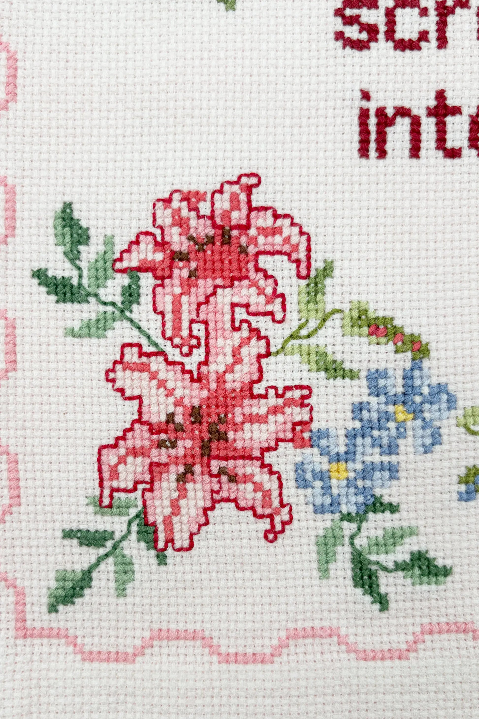 Vintage hand-embroidered textile work with added hand embroidery.